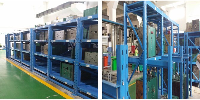 模具貨架也稱為模具架或抽屜架。它們主要用于存放各種模具。根據(jù)層負(fù)荷要求,它們可分為輕型模架和重型模架。貨架頂部可配備移動式提升機(jī),方便提升模具。輕型模架采用100#槽鋼作為專用柱,柱采用優(yōu)質(zhì)Q235帶鋼軋機(jī)。模架抽屜托盤結(jié)構(gòu)通常用矩形管和4.0彎曲件焊接,以形成上層鋼板。引導(dǎo)槽通過彎曲4.0鋼板形成。頂部和底部通過橫梁連接,頂部覆蓋有頂板,頂板可以存放物品。
