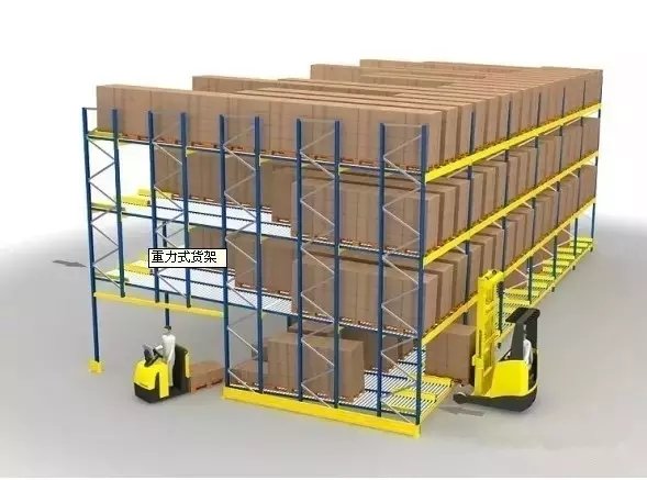 3.重力架重力式貨架的每個貨艙都是具有一定坡度的庫存滑槽。通過井架起重機裝載到滑槽中的貨物單元可以在其自重的作用下自動從倉儲端移動到倉儲端,直到滑槽的出口端或現有的貨物單元停止。在滑槽出口端的第一個貨物單元被懸臂式起重機帶走后,其后面的每個貨物單元在重力作用下依次移動到出站端的位置。為了減少容器和架子之間的摩擦,將輥子或輥子放在原料載玻片上。